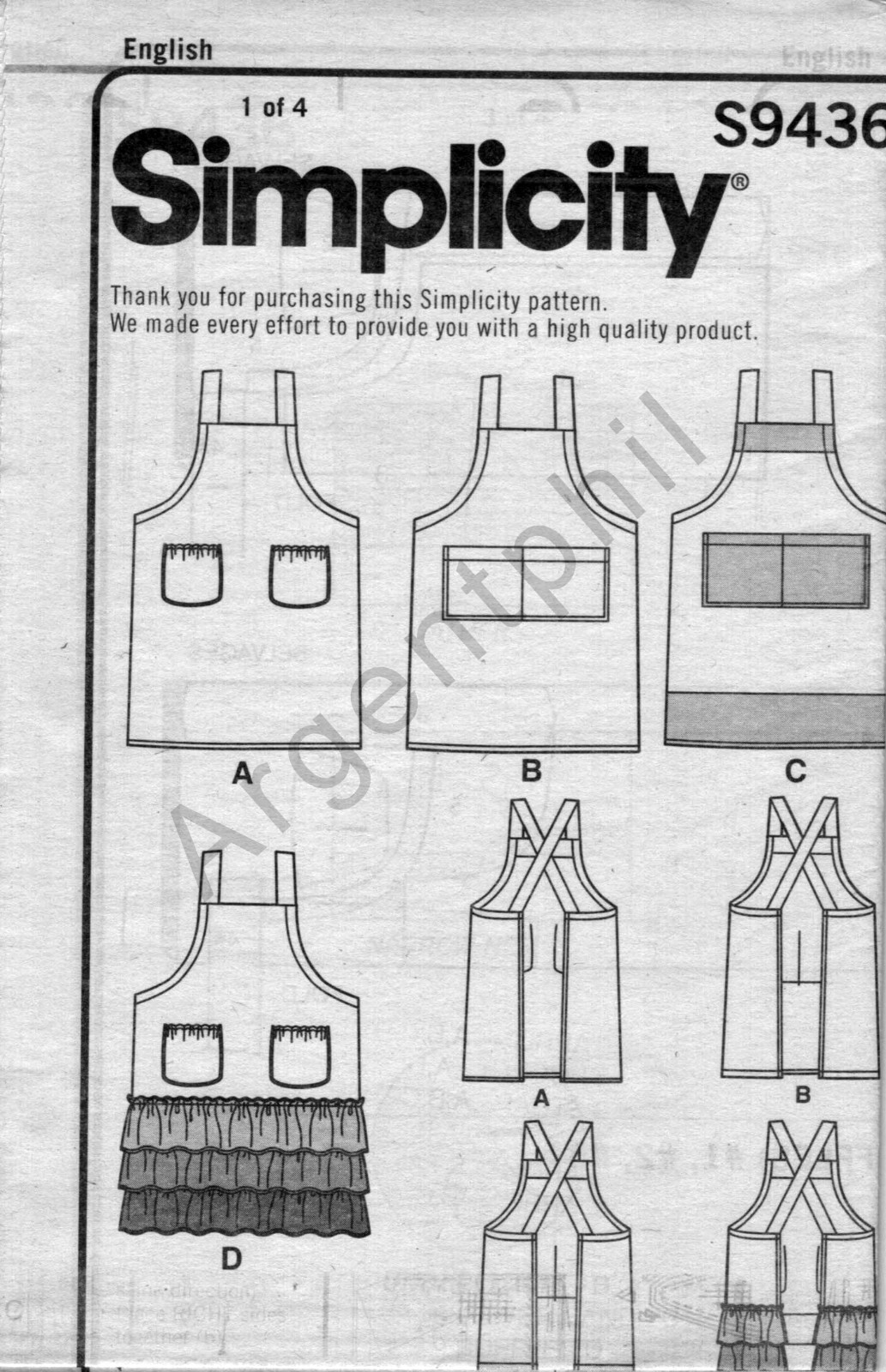 Simplicity 9436 Mother Daughter Crossback Apron Craft Sewing Pattern Free Ship 39363594369 Ebay